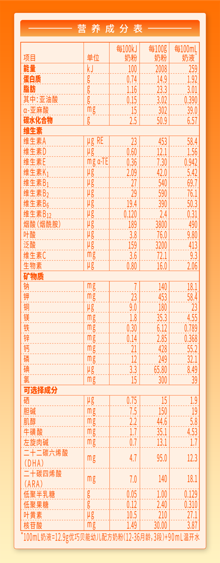 營養(yǎng)成分表